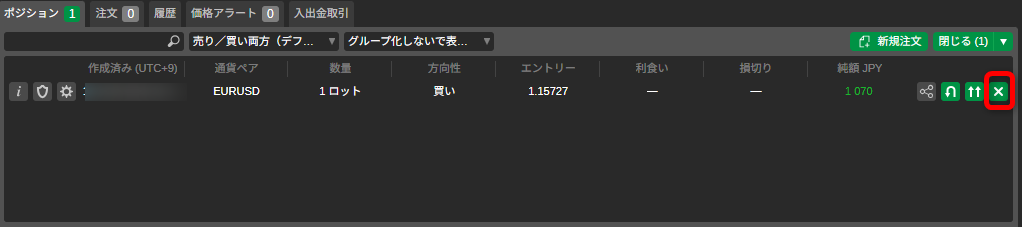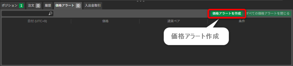 | ターミナル | 保有ポジションの管理 取引履歴の確認 マーケット情報など |