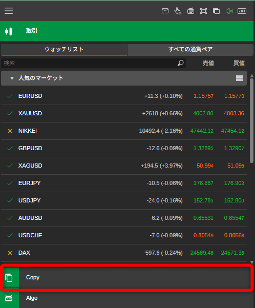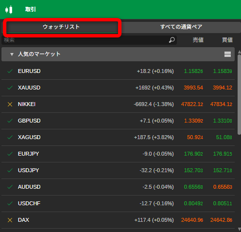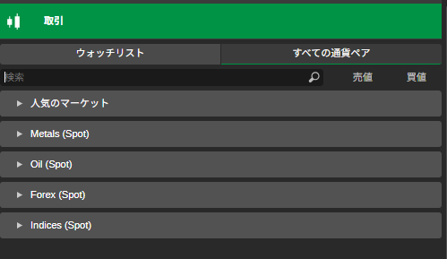 | 取扱銘柄 | 通貨ペア 貴金属 エネルギー 商品 株価指数 仮想通貨 |