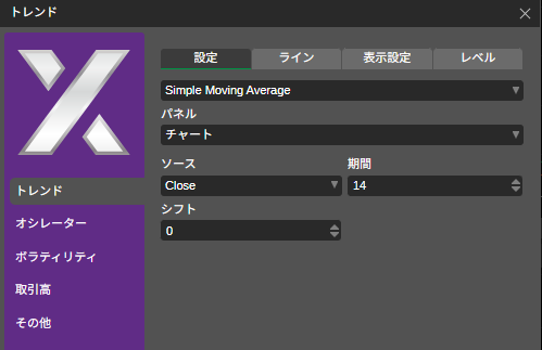 | チャート | テクニカル分析 アラート設定 スナップショットなど |