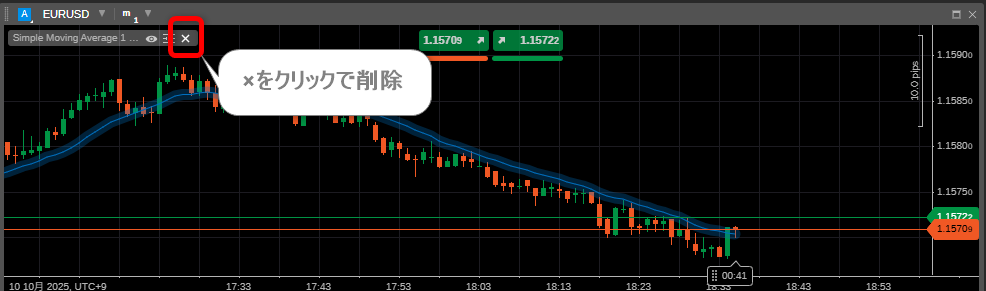 MT4の場合は、このナビゲータを使って、EA・インジケータ・スクリプトなどをチャートにドラッグ&ドロップして追加します。