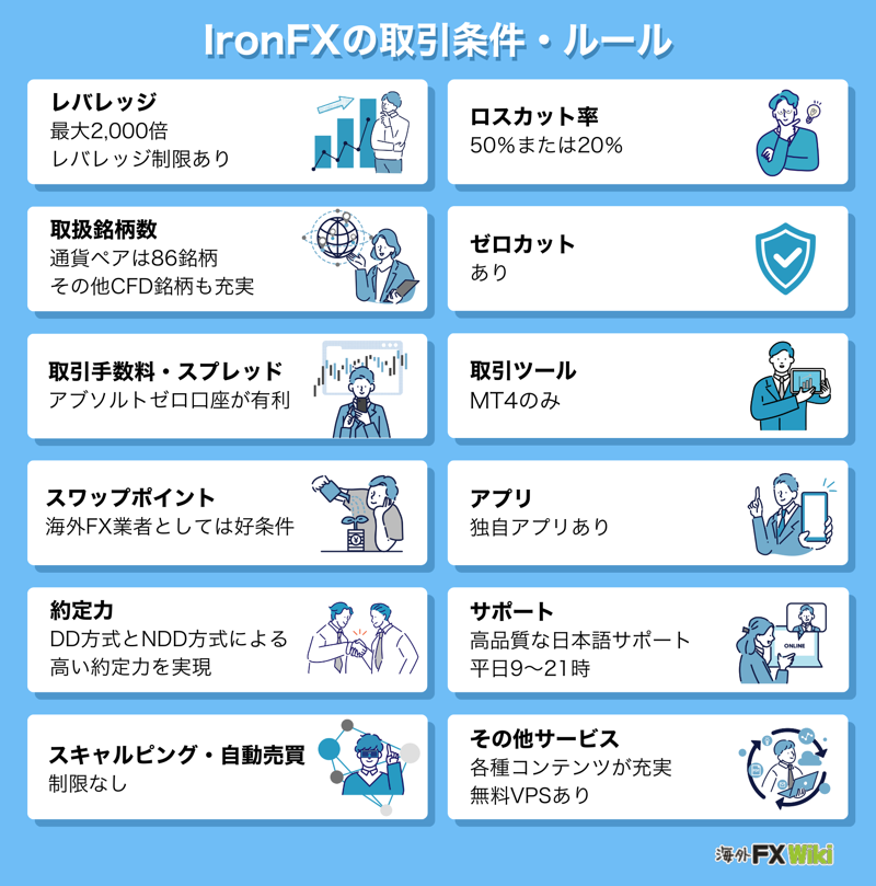 IronFXは、取引条件・サービスともにハイスペックが売りの海外FX業者です。特に、短期重視で低コストとハイレバレッジを最優先したい人に向いています。