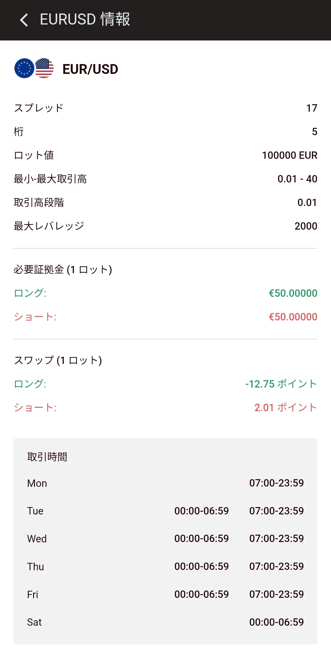 - 冬時間の取引時間:月曜日07:00〜土曜日06:59(日本時間)