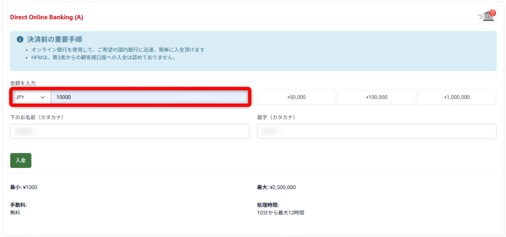 HFMでは、口座登録時に登録した名義と同一の口座からのみ入金が可能です。