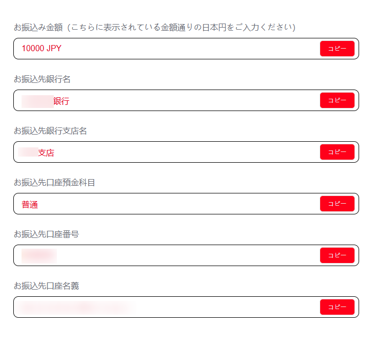- 振込金額を誤って送金すると入金が正しく反映されない場合がある