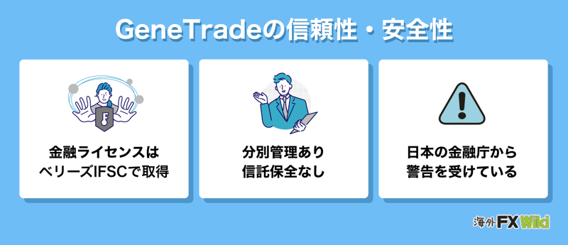 ここでは、GeneTradeがベリーズIFSCで取得している金融ライセンスの詳細や、資金の分別管理体制、さらに日本の金融庁からの警告の有無といった客観的な事実に基づいて安全性を検証します。