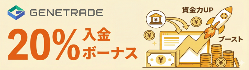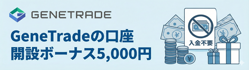 GeneTradeは口座開設ボーナスと入金ボーナスを提供しており、初めて利用するトレーダーでも少額から取引を始めやすい環境が整っています。