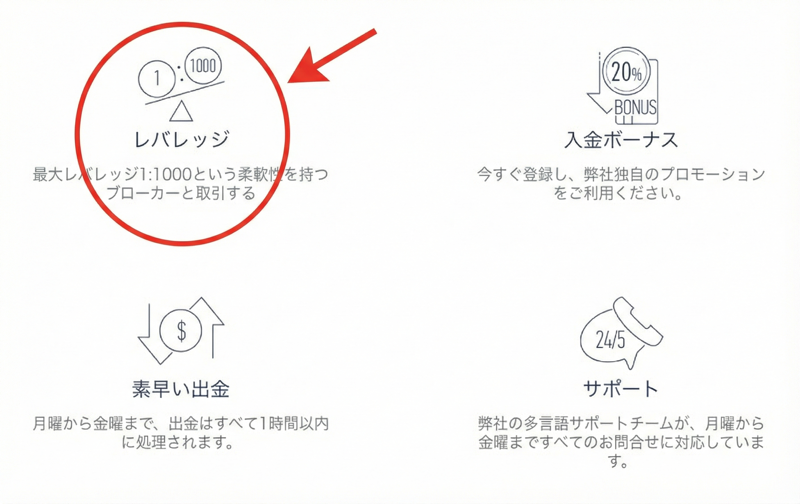 完全日本語対応ですが、人気のXMやExnessと比べると提供サービスが厳選されているため、「コンパクトな業者」というイメージがピッタリな、初心者向けの海外FX業者と言えます。