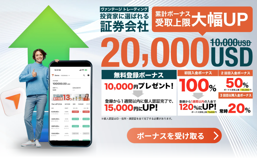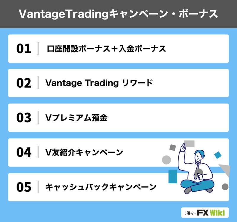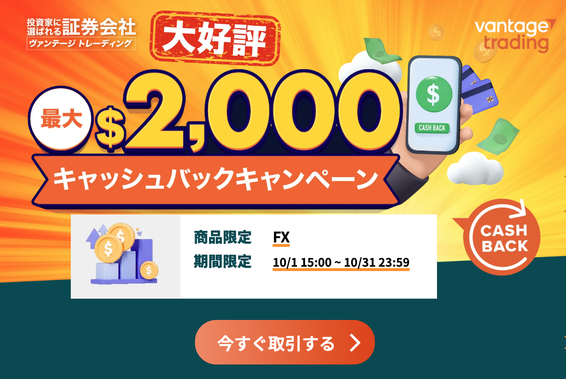 はい。Vantage Tradingではボーナスがもらえる期間限定キャペーンや独自ポイントプログラムを提供しています。