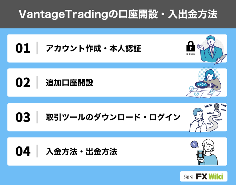 Vantage Tradingは、以下の入出金方法に対応しています。