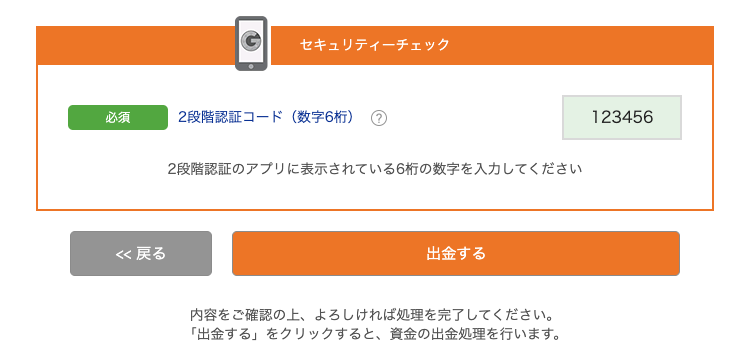これで、出金手続完了です。