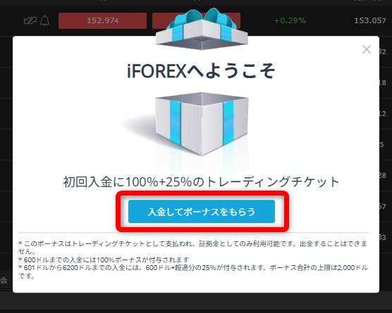 iFOREXでは、初回入金限定の100%+25%入金ボーナスを常時開催しています。