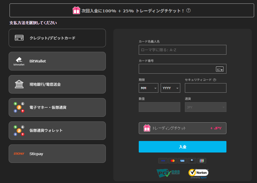 100%+25%入金ボーナスの受け取り方は以下のとおりです。
