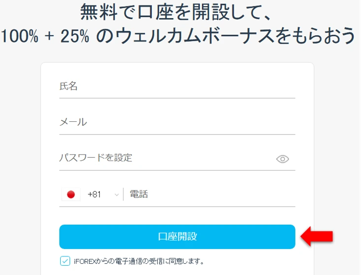 iFOREXの口座開設ボーナスは、無料口座を作成して本人確認を完了するだけで自動的に付与されます。