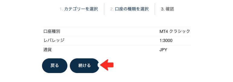 クラシック口座は5千円、プロ口座は5万円、VIP口座は50万円です。