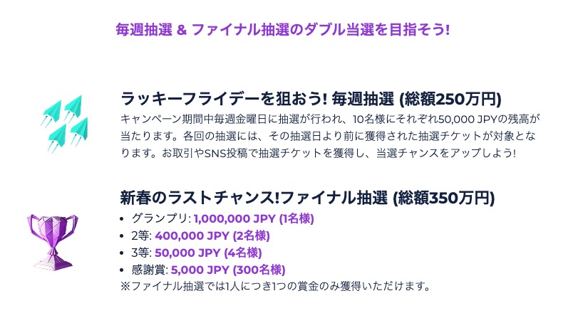 - AXIORY 賞金総額600万円 大抽選会(お年玉キャンペーン2026)NEW!