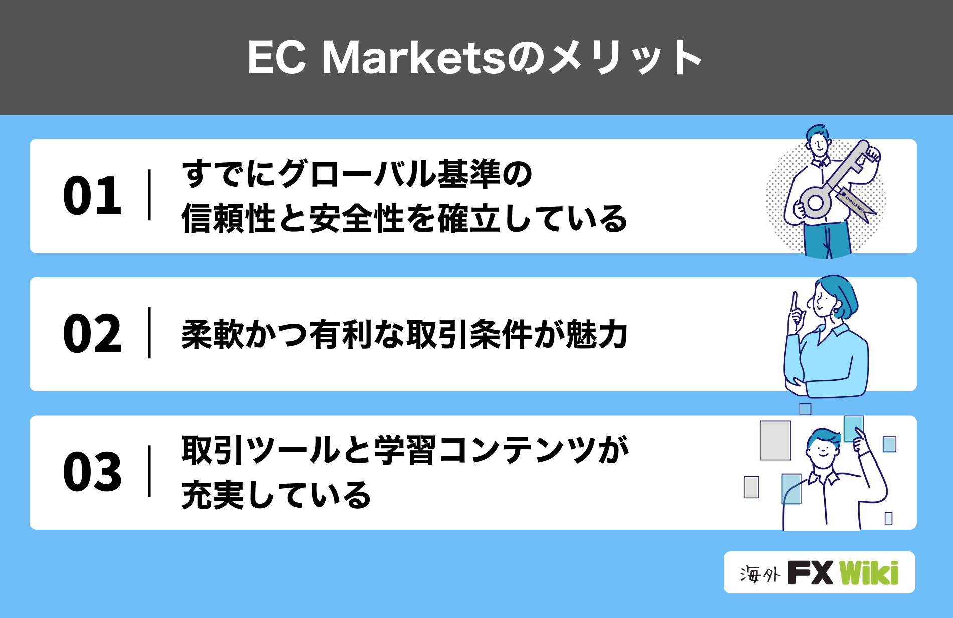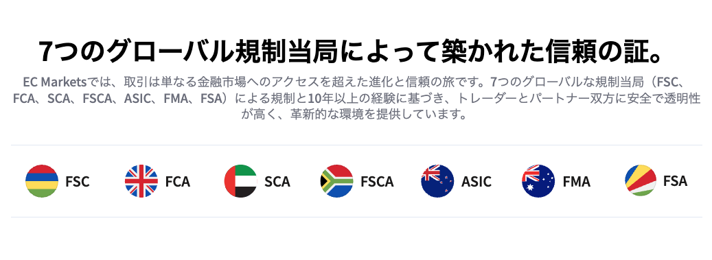 世界各国の異なる規制機関からグローバルに規制を受けていることから、EC Marketsは一定の信頼性や安全性が確保されているといえるでしょう。