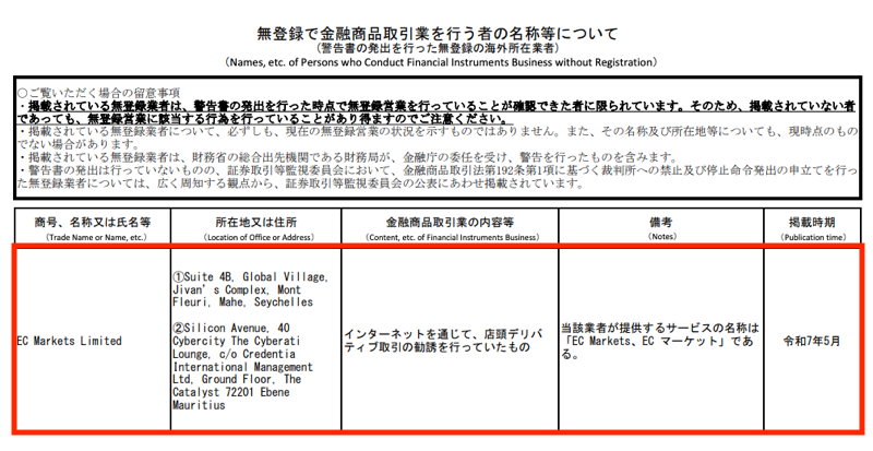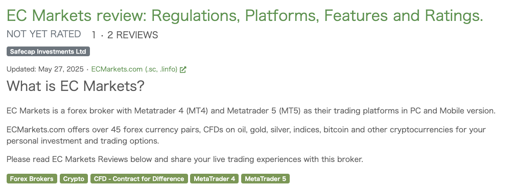 EC Marketsは、2025年5月に日本に上陸した海外FX業者です。