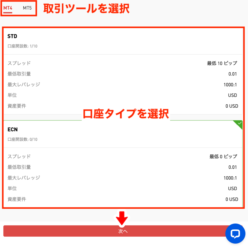 - 3種類の口座タイプ、低スプレッドと格安手数料のECN口座あり