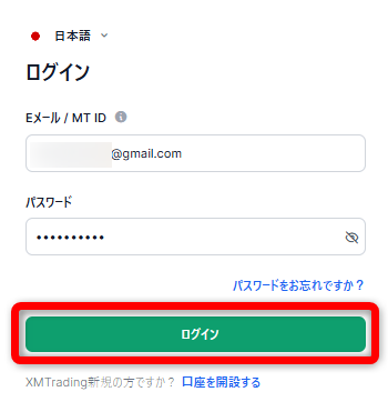 マイページにログインするには、口座開設時に設定した「メールアドレス」と「パスワード」を入力して「ログイン」をクリックしましょう。