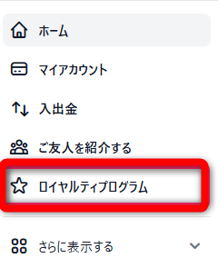 XMのマイページにログインしたら、画面左のメニューから「ロイヤリティプログラム」をタップしてください。