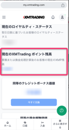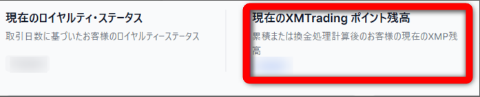 現在のXMTrading ポイント残高」で、現在のXMポイント残高が表示されるので確認してください。