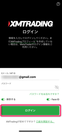 マイページにログインするには、口座開設時に設定した「メールアドレス」と「パスワード」を入力して「ログイン」をタップしましょう。