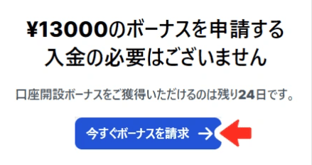 | 口座開設ボーナス13,000円 | 新規口座を開設し、本人確認を完了するだけで13,000円相当のボーナスが受け取れる。 | 全ての口座タイプ |