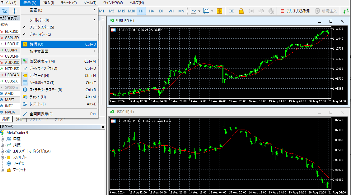 MT4・MT5にログインしたら、シルバー(SILVER)のチャートを表示します。