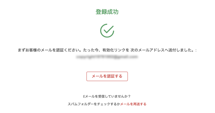 入力後に「続行」をクリックすると、登録したメールアドレス宛に認証メールが届くため、メール内のリンクをクリックして認証を完了させましょう。