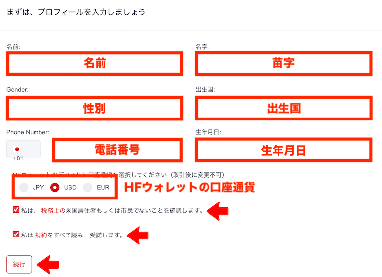 HFウォレットの口座通貨は以前までUSDのみでしたが、アップデートによって新規アカウント作成時に限りJPY・USD・EURから選択できるようになりました。ただし、既存アカウントのHFウォレット口座通貨は変更できません。