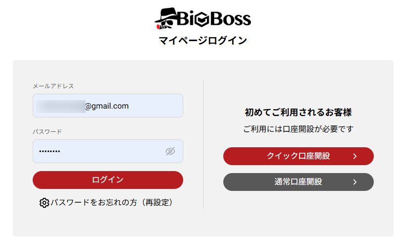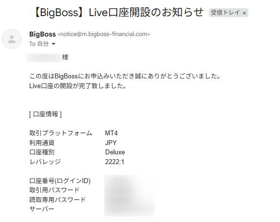 - 【BigBoss】口座をご開設いただきありがとうございます