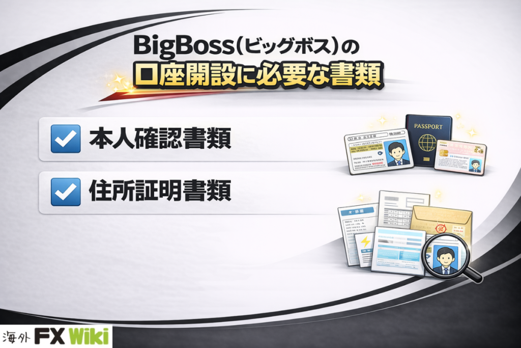 BigBossで口座を開設する際は、本人確認(KYC)のために「本人確認書類」と「住所証明書類」の2種類を提出する必要があります。