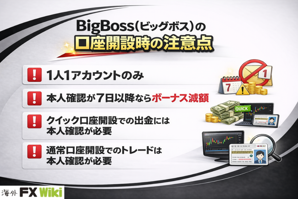BigBoss(ビッグボス)の口座開設時の注意点